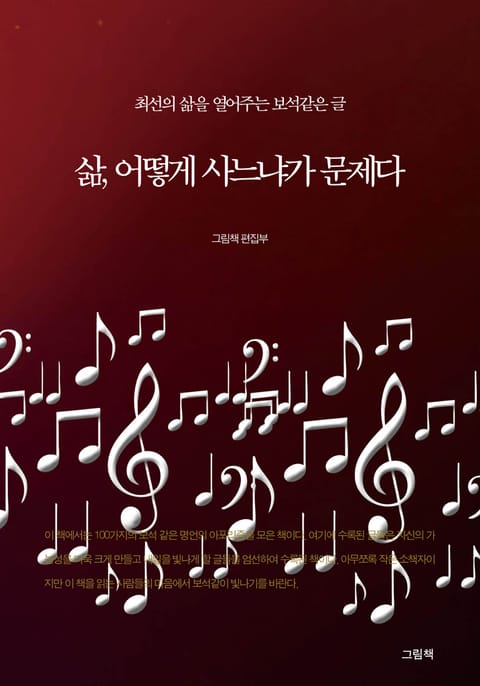이 책에서는 100가지의 보석 같은 명언의 아포리즘을 모은 책이다. 여기에 수록된 글들은 자신의 가능성을 더욱 크게 만들고 내일을 빛나게 할 글들을 엄선하여 수록된 책이다. 아무쪼록 작은 소책자이지만 이 책을 읽는 사람들의 마음에서 보석같이 빛나기를 바란다.