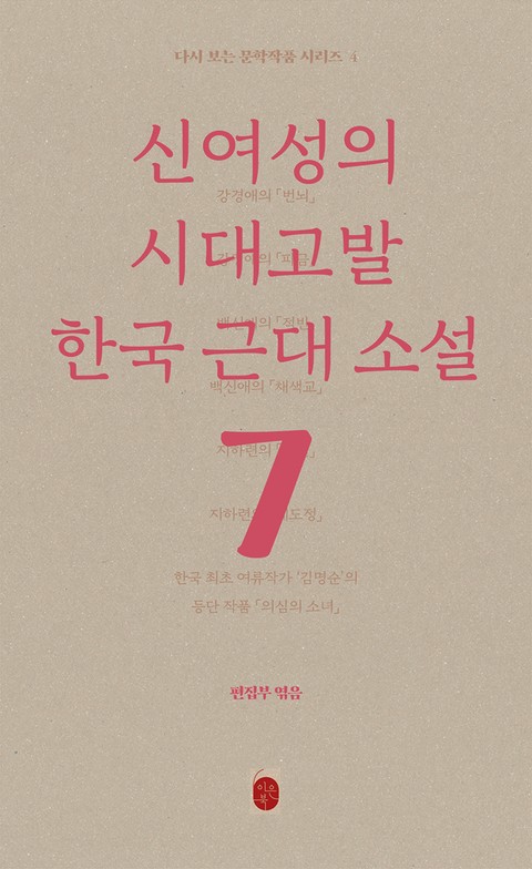 ‘신여성의 시대고발, 한국 근대소설’은 1890~1910년대 태어나 근대사회에서 교육을 받고 자란 신여성으로 대표되는 여류 작가들의 필력을 느낄 수 있는 작품을 엮은 책입니다. 내용과 형식에서 현대적이며, 섬세함과 뛰어난 심리 묘사를 지닌 작품을 감상해 보길 바랍니다.