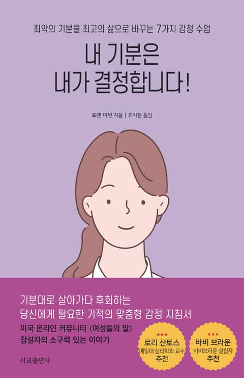 《내 기분은 내가 결정합니다!》는 자신의 삶에 평화와 안정감을 불어 넣기 위해 저자가 걸어왔던 솔직하고 유쾌한 여정을 공유한다. 엄마의 잔소리 같은 평범한 문제로부터 일요일 밤에 느끼는 출근 공포증에 이르기까지, 각 장에서는 누구나 한 번쯤 느꼈을 만한 감정의 촉발 요인들을 7가지 주제로 나누어 다룬다. 그녀가 인용한 이야기들과 연구 결과, 명언들은 우리가 최악의 기분을 맞이했을 때 그것을 어떻게 풀어나가야 하는지에 대한 실마리를 제시해준다. 그리고 마침내 우리가 기분을 지혜롭게 다루게 되는 순간 당신을 위한 최고의 순간이 펼쳐진다는 것을 보여준다. 만약 지금 자신의 감정을 조절하는 문제에 어려움을 겪고 있다면, 저자의 이야기에 가만히 귀기울여보자. 당신에게 든든한 위로가 되어줄 것이다.