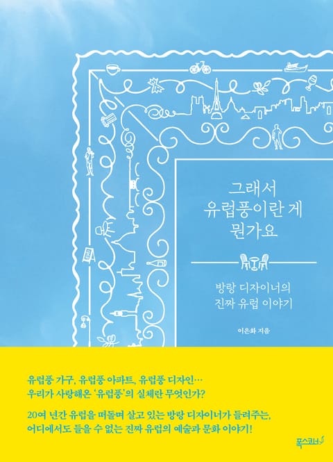 저자가 지난 20여 년 동안 업무와 여행으로 유럽을 돌아다니며 직접 감각하고 체득한 문화와 예술의 세계를 유럽에서 일하는 디자이너의 관점에서 창의적으로 해석해 소개하고 있다. 특히 유럽 문화의 정수를 간직한 이탈리아, 프랑스, 영국, 독일 4개국의 예술과 문화, 디자인과 라이프 스타일을 담았다. 우리가 흔히 유럽풍이라고 지칭하는, 뭔가 고상하고 품격 있는 듯한 문화적인 요소의 실체를 생생하게 탐구하는 책이기도 하다.