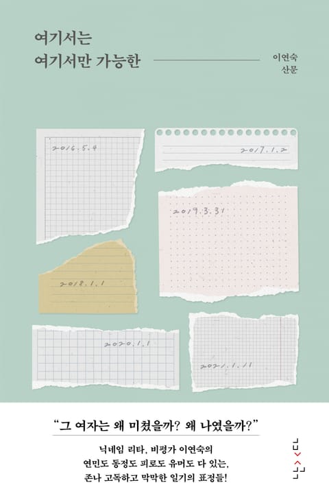 닉네임 리타, 비평가 이연숙의 산문 『여기서는 여기서만 가능한』이 출판사 난다에서 출간되었다. 2016년부터 2021년까지 작가 이연숙/리타가 블로그와 메모장에 쓴 일기를 편집하고 제목을 달아 총 182편의 글을 실었다. 예술가, 여성, 퀴어, 가난, 섹슈얼리티, 글쓰기… 이 다양한 키워드들이 교차하며 직조해내는 텍스트들은 커다란 몸을 보존하고선 통과할 수 없는 촘촘한 그물과 같다. 이연숙의 쓰기는 ‘굿 걸’(233쪽)로서 삼킬 수 없었던 덩어리진 경험들을 더 부수고 깨어 완전히 작아져 가루가 되기를, 나아가 끓는점을 모르고 진동하는 혈액이 되기를 요구하는 힘을 지녔다. 지나칠 정도로 살아 있는 경험, 어떤 말도 충분치 않은 이야기들, 탈진한 몸 안에서 폭발해버릴 것처럼 활발하게 운동하는 정신, 육체를 초과하려고 피부 안에서 지진계처럼 진동하는 뜨거운 피가 흐르는(329쪽) 이 책은 이연숙이 작가로서 세상에 선보이는 첫 산문집이라고도 할 수 있으며 그 안에 실린 다양한 퀴어한 존재들과 함께 사방으로 팽창하는 풍성한 인류학적 텍스트로도 읽을 수 있다. 이 안에서 독자들은 연숙이라는 하나의 문제적 인물, 그와 연루된 무수한 상황들과 마주하게 된다. “항복한 채로 지껄이는 것에 익숙해져야 한다. 무력함을 가까스로 인정하기 위해서가 아니다. 마지막까지 내게 남는 것이 무엇이 될지 정말로 알고 싶기 때문이다.”(59쪽) 이 집요하고도 성실한 쓰기의 근육은 “폭발 직전까지 진동하는 바깥”(324쪽)으로 독자를 초대한다. 그곳에서 독자들은 “나는 살기 위해서 일기를 썼다. 일기가 나를 살렸다”라는 작가의 말을 곱씹어보게 될 것이다. ‘기록해두지 않으면 아무 일도 일어나지 않는’(374쪽) 이연숙의 일기에서 하루는 하나하나의 구멍을 통해 들여다본 공간, ‘여기’가 된다. “언젠가는 산 채로 여기서 빠져나올 수 있을 것이다. 그러고 나면 멋진 무용담을 쓸 수 있을 것이다. 내가 본 것들에 대해 말할 수 있을 것이다.”(본문 중에서)