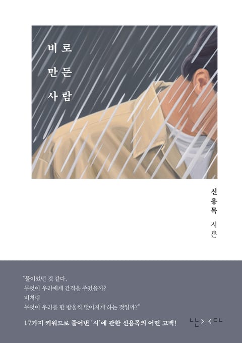 17가지 키워드로 풀어낸 ‘시’에 관한 신용목의 다채로운 고백을 담은 신용목 시론 『비로 만든 사람』이 출판사 난다에서 출간되었다. 시를 이야기하는 난다의 새로운 시리즈 ‘詩란’ 2번으로 출간되었던 이 책에 이수진 화가의 작품을 더해 옷을 입히고 단행본으로 단장해 새롭게 선보인다. 장난감, 술, 비, 가을, 비밀, 미래, 자낙스, 삐삐 롱스타킹…… 시인은 이 글에서 열일곱 가지의 사물과 관념들을 소환한다. 그가 이들을 통해 이야기하는 것은 물론, 오로지, ‘시’. 각 장에 부제로 따라붙은 열일곱 개의 질문 역시 모두 시를 주어로 하고 있거나 시의 어떤 특성에 대해서 묻는다(“시는……” “시의 침묵은……” “시의 그물은……” “시의 천사는……”). 결국 모든 질문은, 그리고 이 질문들에 뒤따라오는 모든 문장은 시라는 정체가 모호한, 어둠 속에서 오직 윤곽으로만 감지되는 존재를 밝히려는 노력인 셈이다.
