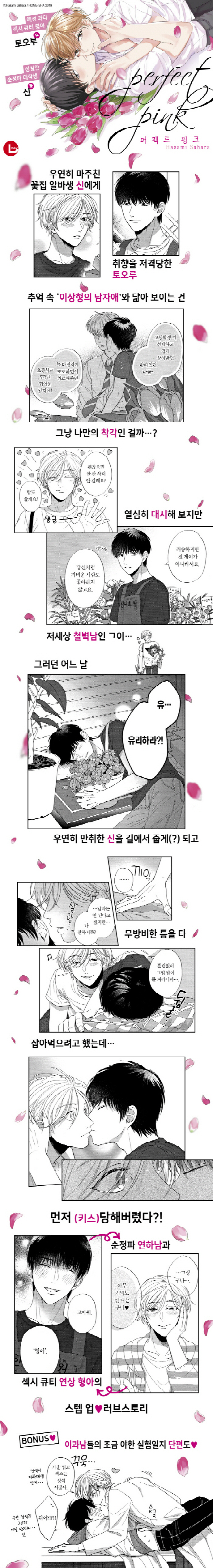 신작 중에서도 그림체가 취향이라서 구입했습니다. 작화는 계속 예쁘네요. 특히 첫번째 이야기의 철벽 연하공이 매력있습니다. 과거 이야기와 현재 이야기가 연결되는 편이구요. 작화와 스토리 모두 좋았습니다~
