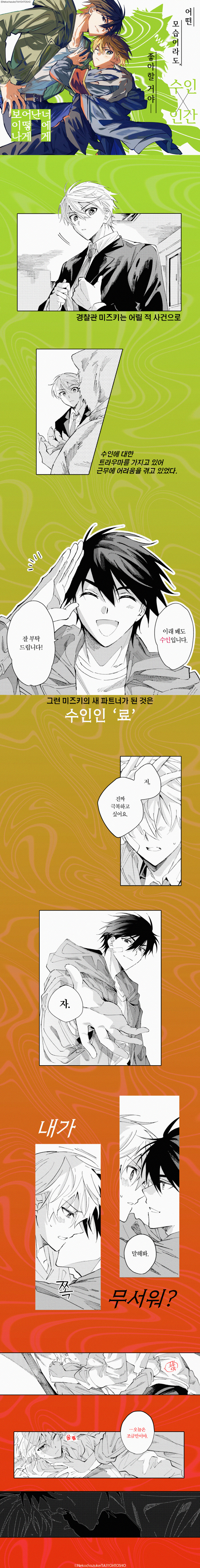 • 수인 모습 많이 안 나와서 좋았어요!! 인간 모습이 넘 잘 생김ㅠㅠㅠㅠㅠ 형사 버디물로 보면 재밌었어요ㅎㅎ