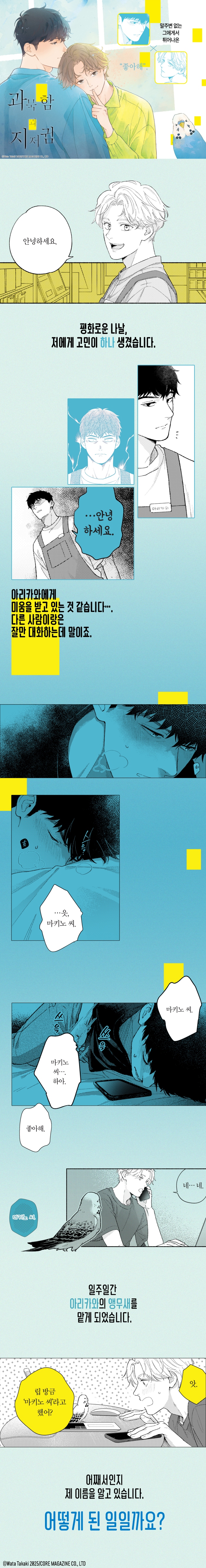 • 앵무새가 너무 귀여움ㅋㅋㅋ 그리고 공 몸매 개쩖 완전 육체미대소동 스토리는 딱 무난무난하게 볼만해요! 수 심리상태가 잘 안나와서 왜 갑자기 공을 좋아하나? 싶을 수는 있겠는데 저한테는 전혀 안 거슬리는 정도였어요 다음권도 나오면 읽어보고 싶네요 추천합니다!