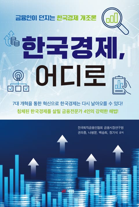 전국퇴직금융협회의 권의종, 나병문, 백승희, 정기석 네 저자는 한국경제가 처한 현실을 진단하고 분석했던 전편에서 한걸음 더 나아가 한국경제가 향할 미래에 대한 전망과 해법을 한 권에 담고자 했다. 네 저자는 퇴직금융인으로서 한국금융시장에 대한 풍부한 경험과 연구를 통하여 작금의 불황의 원인과 이를 해결하기 위한 분석에 몰두한다. 또한 지금의 한국이 처해 있는 경제 문제에서 벗어나 성장하기 위하여 지금 정책이 지향해야 할 청사진들을 구체적으로 정리했다.