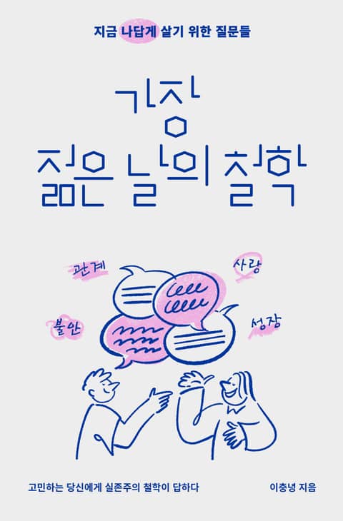 철학 채널로는 드물게 18만 구독자를 보유한 <충코의 철학> 이충녕 저자는 이런 불안과 고민, 질문들을 실존주의를 통해 이야기한다. 우리의 삶과 가장 가깝게 닿아있는 이런 질문들을 실존주의를 통해 생각해보는 이유는 무엇일까? 실존주의는 무엇보다 인간의 고유성과 본질에 집중하고, 내 삶의 의미에 대해 깊게 사유하는 데 가장 적합한 철학 사상이기 때문이다. 저자는 철학적 이론보다 현실의 문제에 집중하여, 살면서 반드시 생각해봐야 할 24가지 질문에 실존주의를 통해 답했다.
