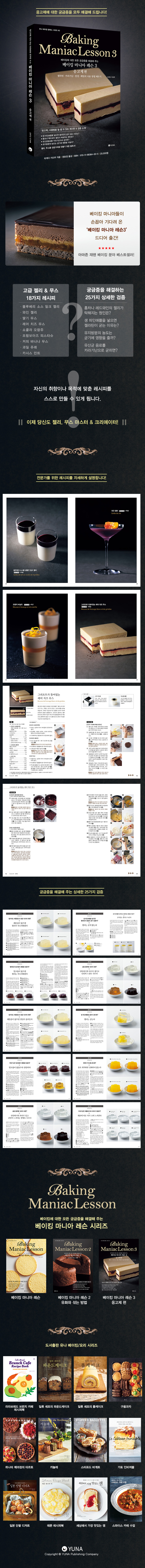 베이킹을 하다 보면 생기는 수많은 궁금증을 해결해 주는 ‘베이킹 마니아 레슨’이 이번엔 ‘응고제’에 대한 모든 궁금증을 해결해 드립니다. 젤리, 무스를 전문가처럼 만들기 위해 꼭 봐야할 필독서입니다. 젤라틴, 카라기난, 한천, 펙틴의 사용 방법을 잘 알 수 있는 레시피는 물론, 다양한 검증 결과를 통해 궁금증을 해결하고 자신의 취향이나 목적에 맞춘 레시피를 스스로 생각하고 만들 수 있게 됩니다. 자~ 이제 베이킹 마니아를 위한 레슨3를 시작합니다.