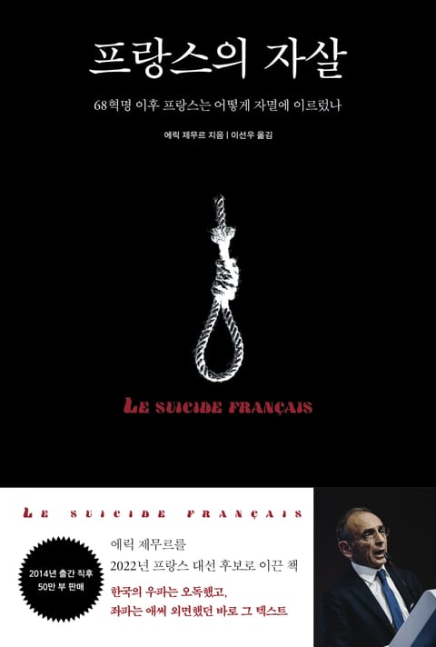 에릭 제무르는 한국의 일반 독자들에게는 생소하지만 국내 우파 지식인들에게는 익숙한 이름일 것이다. 그가 쓴 『프랑스의 자살』이 한국에도 알려지면서 그의 글을 일부 발췌 번역하거나 번역기로 돌린 조악한 글들이 돌았기 때문이다. 그만큼 우파 지식인들이 제무르의 저작과 논리에 관심이 크다는 방증이다. 한국에서 번역되기도 전에 암암리에 읽힐 정도로 관심을 모은 이 책 『프랑스의 자살』은 출간 즉시 베스트셀러가 되었고, 50만 부 이상 판매되며 돌풍을 일으켰다. 우파 언론인이자 지식인이었던 에릭 제무르를 대통령 선거까지 이끈 책이 바로 『프랑스의 자살』이다.