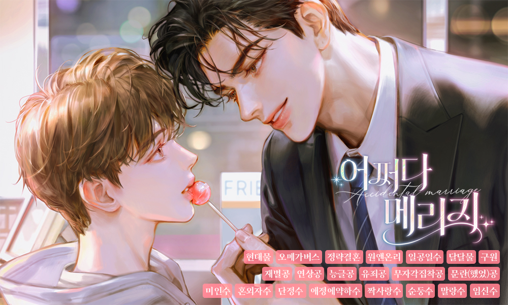 • 작가님 전작을 재미있게 읽어서 차기작을 기다리고 있었는데 오랜만에 리다무 연재로 돌아오셨네요. 오메가버스 세계관에 재벌 능글공이 등장하는 정량결혼물이라니 이번에도 김치찌개를 맛있게 끓여주시려는 것 같아서 기대하면서 읽기 시작했어요. 역시 클레어님의 할리킹물은 시작부터 재미있습니다. 재벌가 자제로 잘나디 잘난 공은 지금까지 자기 멋대로 즐기면서 살아왔는데 결혼하지 않으면 절연하겠다는 부모님의 말에 동의를 하게 되지만 결혼 상대는 얼굴이 예쁘기를 바라는 게 딱 공의 캐릭터를 나타내주는 것 같아서 웃음이 나는군요. 보통 작가님표 수들이 가난해서 형편이 안 좋지만 선한 성품에 순둥한 미인수들이 많은데 이번 작품은 정략결혼물이라고 해서 의외로 수도 좋은 집안에서 자랐나 보다 했더니 역시 그게 아니었네요. 건설 회사 회장의 아들이지만 혼외자로 태어난데다 아버지라는 인간이 자기 아들이 아니라고 부정하는 바람에 상처만 받고 엄마와 둘이 살다가 엄마가 돌아가신 후에는 아르바이트를 하면서 힘들게 살아온 인물이에요. 그런데 갑자기 아버지라는 인간이 찾아와서는 부부가 같이 엄청 수를 잘 챙겨주는 듯하더니만 수가 정략결혼을 거절하려고 하자 본색을 드러내서는 못되게 구는 걸 보니까 역시 이번 정략결혼이 자기네들한테 이득이 되니까 버렸던 아들을 다시 찾은 거였네요. 부모님의 압박에 결혼을 동의했던 공도 수를 막상 만나게 되니깐 예쁜 얼굴에 첫눈에 반한 것 같은데요. 그러니 편의점에서 단순히 손님으로 대하는 것도 좋고 억지로 선을 보러 나와서 속상해하는 얼굴이나 우는 얼굴도 예쁘다고 생각하죠. 하지만 아무래도 그동안 놀기만 하고 누구와 진지하게 사귀어 본 적이 없는 공으로서는 자기 감정에 대해 잘 모르는 모양이네요. 안타깝지만 짝사랑수 키워드가 있는 걸 보면 수가 자신을 다정하게 챙겨주는 공을 좋아하게 되나 본데 그동안 힘들게 살아온 수가 오래 마음고생 하지 않도록 공이 얼른 수에 대한 자신의 마음을 자각했으면 좋겠습니다.