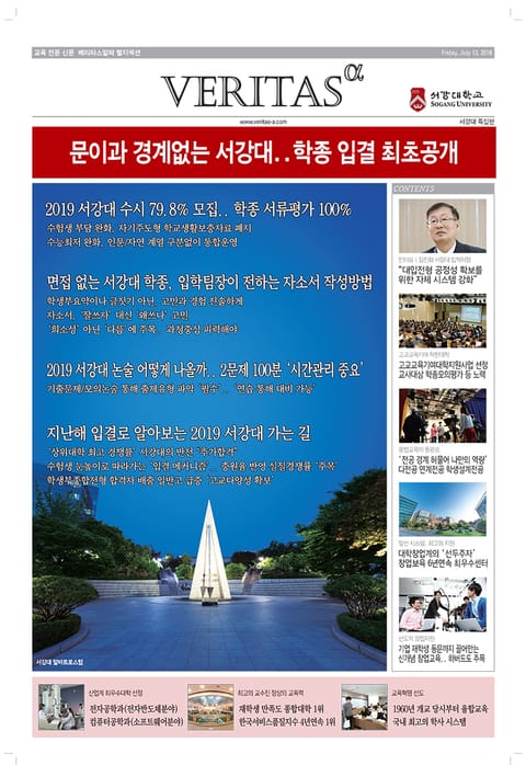 eBook <2019 서강대 가는 길>은 교육전문신문 베리타스알파가 2019 수시를 겨냥해 발행한 별지특집을 eBook 형태로 가공한 것입니다.