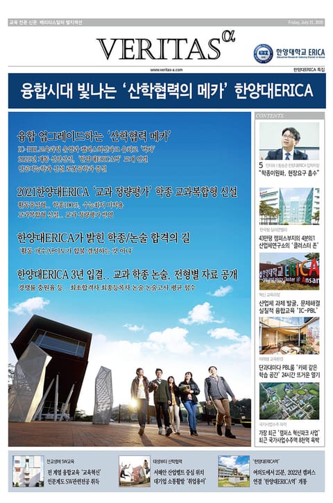 eBook <2021 한양대ERICA 가는 길>은 교육전문신문 베리타스알파가 2021 대입을 겨냥해 발행한 별지특집을 eBook 형태로 가공한 것입니다. 2021 수시 원서접수를 앞두고 베리타스알파가 특집 대학으로 선정한 한양대ERICA는 학종을 이원화합니다. 수능최저를 적용하지 않고 활동 중심으로 선발하는 기존 활동중심형에 교과 정량평가 이후 활동 등 학생부종합평가를 실시하는 교과복합형을 신설했습니다. 학종 모집인원은 대폭 확대됐습니다. 정원내 합산 2020학년 333명(18.2%)에서 2021학년 505명(27%)으로 확대입니다.