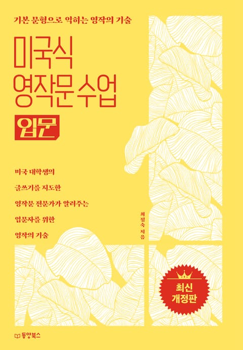 상고에서 야간대로, 대학원에서 유학으로, 영어 실력 하나로 미 박사과정까지 진학한 <미국식 영작문 수업>의 저자가 이번에는 초중급자를 위한 영작문 입문서 <미국식 영작문 수업_입문>로 다시 독자를 찾아왔다. 전작 <미국식 영작문 수업>이 세련된 고급 영문 만들기를 위한 지침서였다면, 새롭게 내놓은 ‘입문편’은 원어민이 읽고 쓰고 말하는 자연스러운 영문 만들기를 위한 초중급자용 지침서를 표방한다.