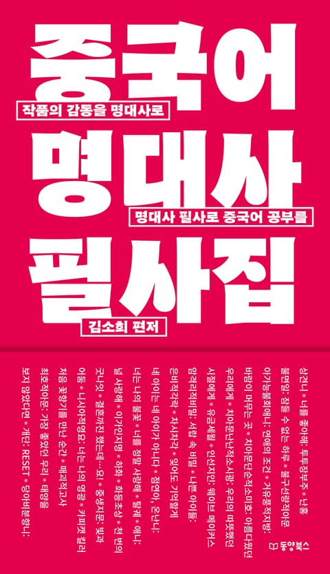 명대사 필사는 낯선 외국어를 나의 언어로 ‘길들이는’ 효과적인 방법이다. 명대사는 대부분 입말이기에 실제 생활에서 쓰이는 단어와 문형으로 이루어져 있다. 이러한 명대사를 반복해 읽고 따라 쓰다 보면 자연스레 단어와 문형이 몸에 익고, 어느 날 중화권 드라마나 영화에서 비슷한 대사가 나오면 그저 흘러가는 소리가 아니라 ‘의미 있는 말’로 귀에 꽂히는 경험을 하게 된다. 도대체 이걸 언제 쓸까 싶은 예문들을 꾸역꾸역 외우는 데 지쳤는가? 그렇다면 『중국어 명대사 필사집』과 함께 올해는 중국어 공부 끝까지 ‘정주행’ 해보자!