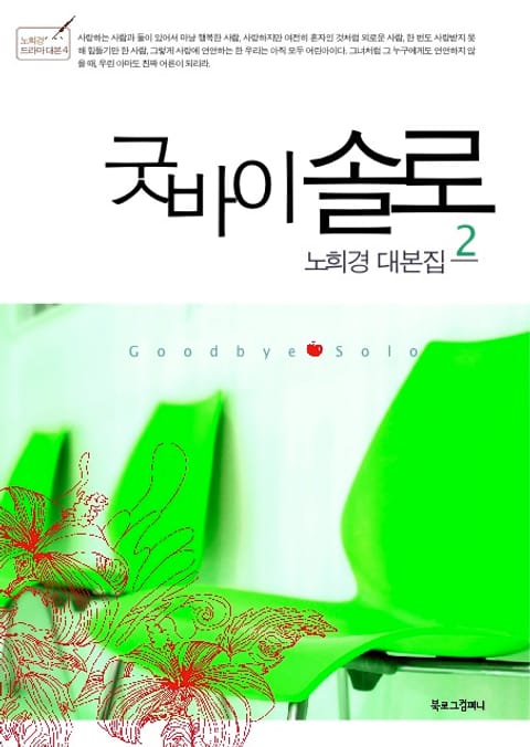 마음 속에 덜 자란 아이를 품고 있는 모든 어른들을 위한 드라마, 굿바이 솔로의 대본 제 1권이다. ‘보는 드라마에서 읽는 드라마’를 시도해 주목을 받았던 ‘노희경 드라마 대본 시리즈’가 『그들이 사는 세상』 『거짓말』 『세상에서 가장 아름다운 이별(단편집)』에 이어 네 번째 책이다. 『굿바이솔로』는 여러 인물들이 등장해 각자의 이야기를 하면서 전체적인 울림을 만들어가는 ‘다중 구조’와 긴장감 넘치는 ‘추리적 요소’로 시청자들과 언론의 주목을 받았던 작품이다. 대본집이라는 낯선 형식에도 불구하고, 촘촘하고 치밀하게 짜여진 사건과 매력적인 인물들의 조화 때문에 쉴 새 없이 책장을 넘기게 된다. 또한 지나가는 듯 툭툭 내던지지만 지문처럼 가슴에 찍히는 노희경 표 명대사들은 각자의 상처에 갇힌 한 개인이 스스로와 어떻게 화해할 것인지, 나아가 다른 사람과 어떻게 소통하고 살아갈 것인지에 대해 따뜻한 가르침을 준다.