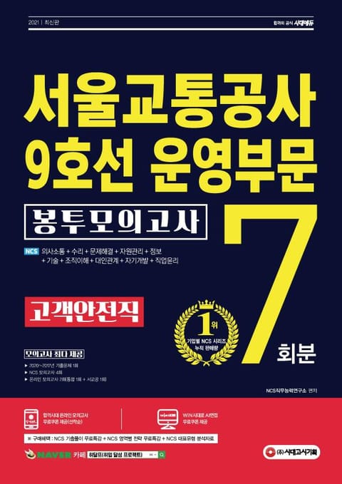 2021 최신판 서울교통공사 9호선 운영부문 고객안전직 NCS 봉투모의고사 7회분 상세페이지