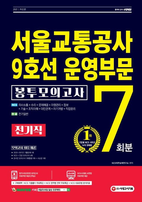2021 최신판 서울교통공사 9호선 운영부문 전기직 NCS+전공 봉투모의고사 7회분 상세페이지