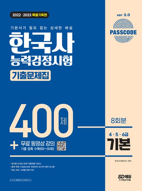 개정판|2022ㆍ2023 PASSCODE 한국사능력검정시험 기출문제집 400제 8회분 기본(4ㆍ5ㆍ6급) + 무료 동영상 강의