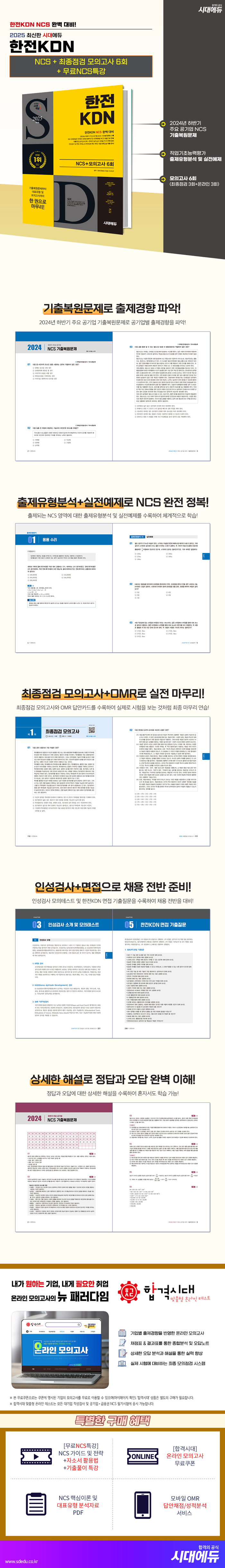 2025 최신판 시대에듀 한전KDN NCS+최종점검 모의고사 6회+무료NCS특강