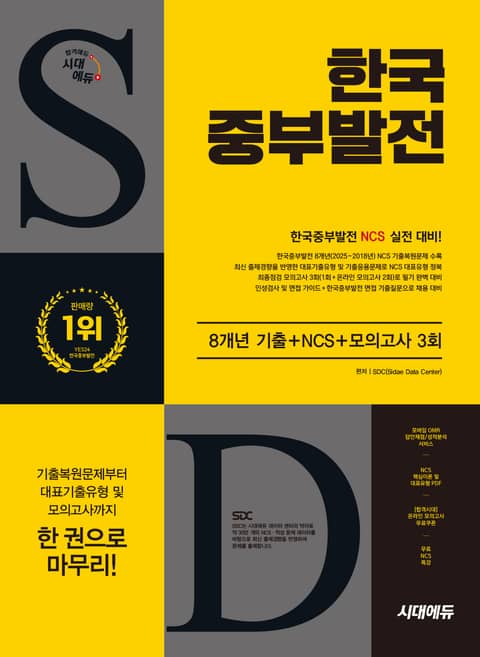 시대에듀 한국중부발전 8개년 기출+NCS+최종점검 모의고사 3회+무료NCS특강