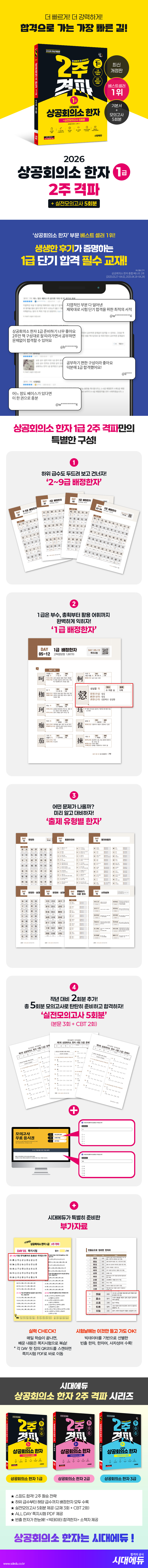 2026 시대에듀 상공회의소 한자 1급 2주 격파 + 실전모의고사 5회분