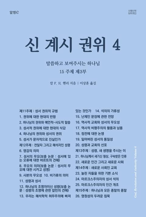 『신, 계시, 권위』는 원서로 총 6권, 시리즈 총 6권 3,054쪽으로 출간되었으며, 성경의 복음주의 입장에 대한 가장 방대한 대작이다. 한국어로는 이중 4권이 출간되었었다. 1978년 제1권, 1979년 제2권이 맹용길 교수의 번역으로 대한기독교출판사를 통해서, 1982년 제3권, 1986년 제4권이 고 이상훈 교수의 번역으로 생명의 말씀사를 통해서 출간된 바 있다. 세월이 흘러 미국에서도 한동안은 절판되었다가 1999년 Crossway를 통해서 복간되었는데, 각각의 한국어판은 이후 출간된 흔적도 찾기 힘들고, 그나마 어쩌다 헌책으로 나오면 오래전 책이라 변색이 심한 상태로 비싼 가격에 거래되는 수준이었다. 갈색으로 심하게 변색해가는 종이색 만큼이나 내용 중에 21세기에 필요없는 내용도 있지만 복음주의 신학계의 입장에서 신학 연구를 하는데 있어서는 중요한 연구자료인 것은 확실하기에 새로운 저작권사인 Crossway와 정식 저작권 계약을 맺고, 한국어 원고는 기존판을 각각 이용허락을 받아 그대로 사용하여 알맹e의 M어게인 시리즈로 다시 낸다.