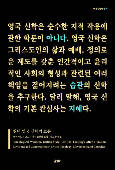 이 책에는 오랜 기간 케임브리지 대학교 흠정 교수로 활동하며 현대 영국 신학을 대표하는 이 중 한 사람인 데이비드 F. 포드가 2000년 초 미국 독자들을 위해 The Christian Century에 기고한, 현대 영국 신학에 관한 세 편의 글을 모아 놓았다. 20여 년 전 글들이지만, 포드가 주요 인물로 소개한 이들이 글이 나온 당시보다 더 광범위한 영향력을 행사하고 있다는 점에서, 그리고 이들의 영향을 받은 신학자들이 영국, 영미권을 넘어 세계 곳곳에서 활동하고 있다는 점에서 높은 가치를 지녔다. 한국어판에는 차보람 교수가 최근 영국 신학의 지형을 소개하는 글을 해설로 실어 놓아 영국 신학의 과거와 현재, 미래를 좀 더 입체적으로 살필 수 있게 했다. 영국 신학에 관심이 있는 전문 독자뿐 아니라 직간접적으로 영국 신학자들의 영향을 받는 신학생, 목회자 모두에게 유용한 참고자료가 될 것이다. 쁘띠 알맹e 시리즈 신학 부문 첫번째 책이다.