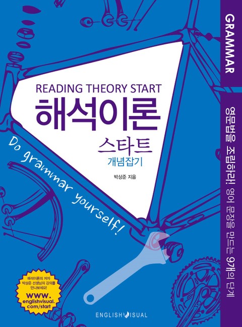 영어에는 200여 개의 문장을 만드는 데 필요한 부품(parts of sentence)이다. 이 부품을 ‘품사’라고 한다. 문법을 오랫동안 공부하고도 여전히 확신하지 못하는 이유는 이 품사들이 문장을 만드는 데서 어떤 일부를 맡고 있는지를 알지 못하기 때문이다. 그리고 이 문제의 근본 원인은 기존의 문법이 ‘품사 분류’ 수준에 머물러 있고, 품사를 조립해서 실제 문장을 만드는 과정을 보여주지 못하는 데 있다. 이 문장 조립의 과정은 생각보다 어려운 것이어서 지난 50년간 비약적으로 발전한 현대 언어학의 도움이 필요로 한다. 해석이론 스타트는 부품(품사)들을 하나하나 조립해서 결국에는 ‘영어 자전거(문장)를 완성’하는 과정을 보여주는 최초의 ‘문장문법’ 책이다. 1단계는 ‘명사 앞에는 어떻게 정보를 결합할까?’이고 명사 앞에 관사(정관사, 부정관사, zero관사)를 붙이는 가장 기본적인 단계부터 출발한다. 관사는 무엇이고, 왜 관사를 쓰는지 자세히 설명하고 이것이 핵(head)이 되는 명사와 어떻게 연결되는지를 보여준다. 최종적인 9단계는 ‘문장과 문장을 차별해서 연결하는 방법은?’이다. 이렇게 단계를 거치면서 만들어진 문장과 문장을 최종적으로 1차 정보와 2차 정보로 차별해서 연결하는 방법론을 설명한다. 9개의 단계에는 각각 ‘문장 조립도’가 있어서, 각 단계에서 설명하는 부품들이 어떻게 결합해서 더 큰 부품으로 발전하고 연결되는지를 보여주고 직접 이 조립도를 작성하게 한다. 조립도 바로가기: http://www.englishvisual.com/map).