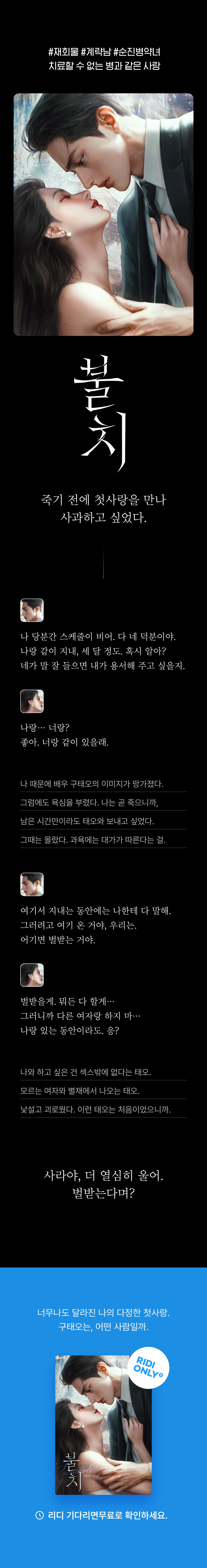 * 작품 키워드: #현대물 #재회물 #첫사랑 #애증 #계략남 #후회남 #순진병약녀 #시한부녀