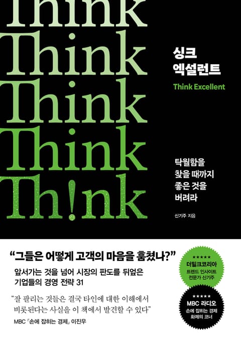 실리콘밸리 빅테크 ‘테슬라’, 콘텐츠 왕국 ‘디즈니’, 가구 업계 기업가치 1위 ‘오늘의집’, 애플과 아마존이 먼저 찾는 데이터분석 회사 ‘차트메트릭’ 등 『싱크 엑설런트』는 탁월함으로 무장해 시장의 위기와 한계를 극복하고 더 나아가 비즈니스 판도를 바꾼 기업들의 성공 스토리를 다룬다.