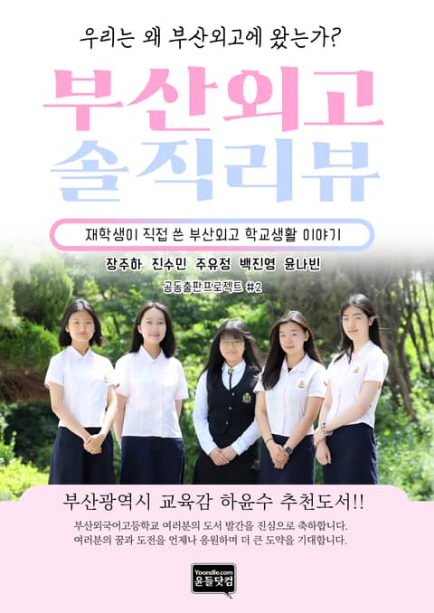 제가 이 학교에 입학하기 전, 저는 학교 재학생들이 직접 이야기해 주는 학교 정보가 담긴 서적이 있었으면 좋겠다고 생각했었는데요. 그런 경험을 떠올리며 부산외고에 오기를 고민하는 학생들이나 부모님들을 위해 ‘많은 고등학교 중 왜 하필 부산외고를 선택했는지, 부산외고만의 유일한 특징은 무엇인지’에 대한 책을 쓰면 좋을 것 같다고 생각했습니다.