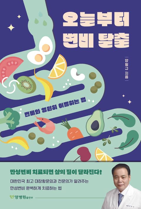 잘못 알고 있는 변비의 기초지식부터 구체적인 변비 치료 방법, 변비의 원인과 진단 방법, 변비의 치료 방법, 즉 생활요법, 운동요법, 약물요법에 대해 쉽게 설명하는 책! 『오늘부터 변비탈출』은 만성변비는 말 그대로 만성이니까 100% 치료되지 않는다는 생각, 변비에는 변비약을 사 먹는 게 가장 효과적이라는 생각 등으로 만성변비를 방치하며 힘들어하는 사람들에게 변비와 영원히 이별하는 비법을 담은 책이다. 현대인들은 바쁘고 스트레스가 많다. 육류, 패스트푸드, 유아 때 먹는 분유, 청소년 때부터 오랜 시간 앉아서 공부하고 경쟁해야 하는 사회 시스템, 사회생활을 통해 받는 스트레스와 아침을 거르고 모임 등에서 먹게 되는 술과 안주 등의 식습관 등으로 비만과 변비가 오기 쉽다. 저자는 이러한 생활을 스트레스를 줄이고, 자연으로 돌아가는 생활로 바꾸며, 식물성 섬유 섭취를 늘리고 운동 등 생활요법의 개선만으로도 변비가 좋아질 수 있다고 말한다. 어떤 상태가 변비인지, 어떻게 하면 변비를 고칠 수 있는지, 수술 혹은 약이 필요한 때는 언제인지 등의 비책을 알려준다. 이뿐만 아니라, 배변을 쉽게 하는 자세, 임신 중 변비 치료 방법, 노인 변비 치료 방법, 단계별 변비약의 종류와 효능 및 수술의 종류 등 변비 환자들이 가장 궁금해하지만 쉽게 알 수 없었던 변비의 기초지식과 치료 방법 등을 알려준다. 삶의 질을 저하시키는 변비로 힘들어하는 사람이라면 『오늘부터 변비탈출』을 통해 삶의 질이 달라짐을 경험하게 될 것이다.