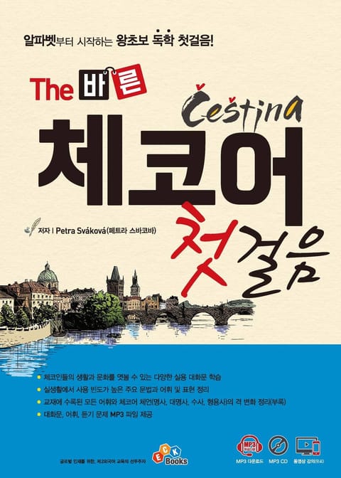 알파벳부터 기초 문법까지 한 권에 마스터한다! 알파벳부터 기초 문법까지 한 권에 마스터한다! 체코인들의 생활과 문화를 엿볼 수 있는 다양한 실용 대화문 학습 실생활에서 사용 빈도가 높은 주요 문법과 어휘 및 표현 정리 교재에 수록된 모든 어휘와 체코어 체언의 격 변화 정리(부록) 대화문과 어휘, 듣기 연습문제 MP3 파일 제공