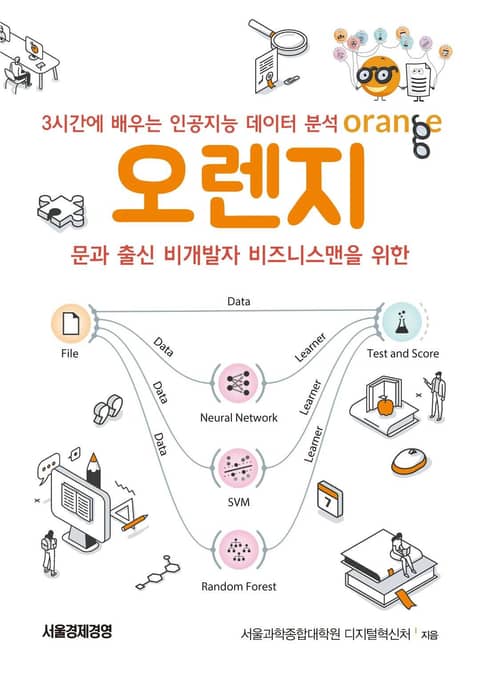문과 출신 비개발자 비즈니스맨을 위한 인공지능 가이드. 객관적 경영의사결정에 바로 활용할 수 있는 인공지능 데이터 분석 방법을, 코딩 없이 마우스 클릭으로 배운다. 비즈니스맨을 위한 AI 경영학 교육에 앞장서고 있는, 서울과학종합대학원에서 출간한 인공지능 데이터 분석 매뉴얼. 코딩/프로그래밍 없이 마우스 클릭만으로 인공지능 데이터 분석을 할 수 있게 해주는 오렌지(Orange) 프로그램을 이용해, 경영자를 위한 인공지능 기본개념부터, 데이터 지능(어떤 데이터를 수집할 것인가? 그걸로 인공지능을 어떻게 공부시킬 것인가? 어떻게 분석하고 어떻게 적용할 것인가? 등 데이터 이해/활용 능력), 실제 데이터 분석 과정까지 그림과 설명을 통해 상세히 소개한다. 인공지능에 대한 배경지식이 없어도, 코딩/프로그래밍 경험이 없어도, 누구나 쉽게 따라할 수 있는 점이 특징이다.