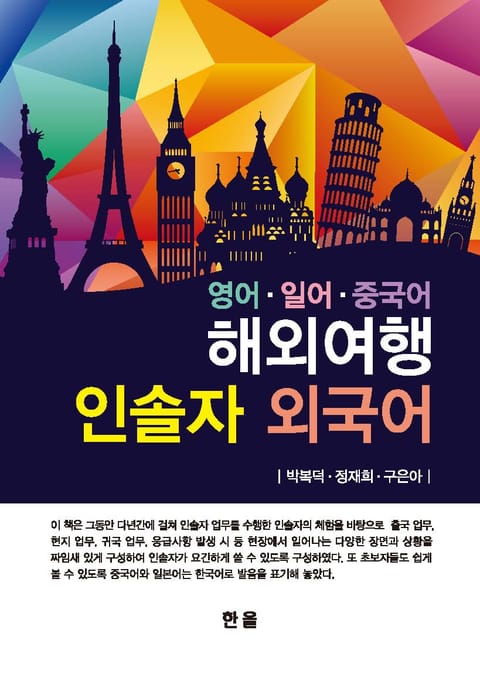 이 책은 그동안 다년간에 걸쳐 인솔자 업무를 수행한 인솔자의 체험을 바탕으로 출국 업무, 현지 업무, 귀국 업무, 응급사항 발생 시 등 현장에서 일어나는 다양한 장면과 상황을 짜임새 있게 구성하여 인솔자가 요긴하게 쓸 수 있도록 구성하였다. 또 초보자들도 쉽게 볼 수 있도록 중국어와 일본어는 한국어로 발음을 표기해 놓았다.