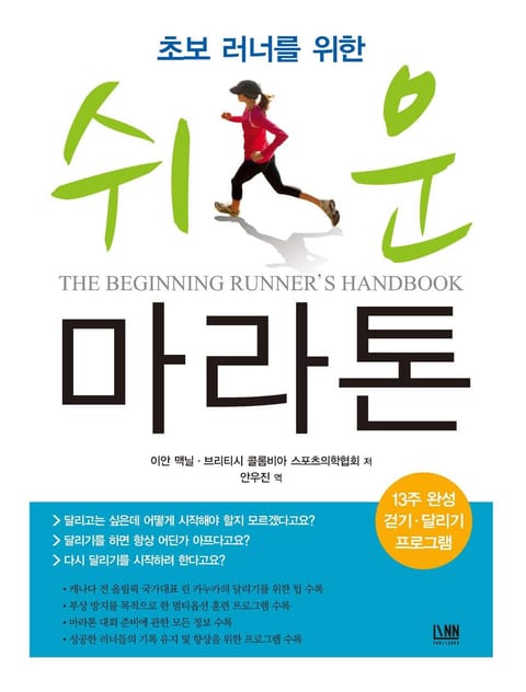 초보 러너를 위한 핸드북! 13주 완성 걷기·달기기 프로그램『초보 러너를 위한 쉬운 마라톤』. 이제 막 달리기를 시작한 초보달리기 입문자들이 부딪히는 여러 문제에 대한 현실적인 답을 제시한 책으로, 효과적인 달리기 훈련법에 대한 정보를 소개한다. 초보 입문자들의 성공을 돕기 위해 신뢰성이 입증된 ‘13주 런워크 프로그램’을 통해 부상의 위험을 최소로 하여 목표를 성취할 수 있는 방법을 알려준다. 이 책은 영양학, 스포츠의학, 스포츠 과학, 심리학, 훈련 등 폭넓은 전문가들의 현실적인 조언을 비롯하여 유용한 훈련 팁과 선배 러너들이 겪었던 경험담을 종합하여 성공적으로 달리기를 할 수 있는 단계적인 청사진을 제시한다. 어떤 신발과 운동복을 선택하고 무엇을 먹어야 하는지부터 근육통이나 부상을 피하고 즐겁게 운동할 수 있는 법까지, 달리기에 관한 모든 정보가 상세하게 담겨있다.