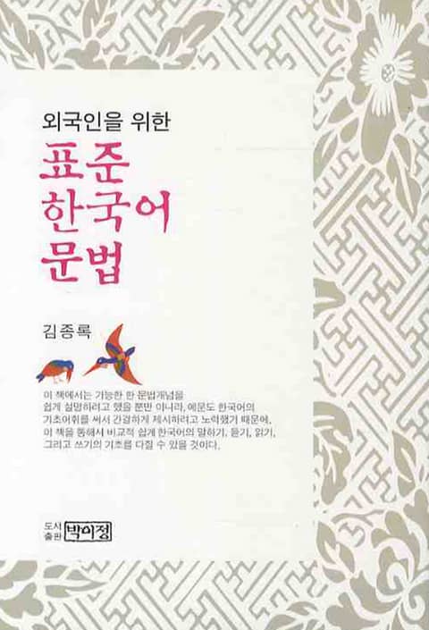 처음으로 한국어를 배우는 외국인 학생과 비즈니스맨, 그리고 한국어 문법지식을 좀더 체계적으로 배워가기를 원하는 일반 외국인들을 위해 집필된 책이다. 이미 오랫동안 한국어를 배워온 사람들도 이 책을 통해서 한국어 문법지식을 다시 정리를 함으로써, 한국어에 대해 보다 깊이 이해하는 계기가 될 수 있을 것이다.