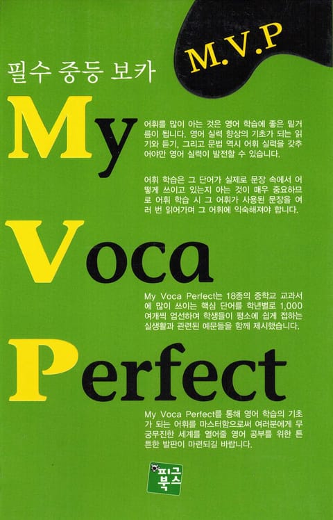 필수 중등 보카『M.V.P(My Voca Perfect』. 18종의 중학교 교과서에서 많이 쓰이는 핵심 단어들을 학년별로 1,000여개씩 엄선하여 학생들이 평소에 쉽게 접하는 실생활과 관련된 예문들을 함께 제시했다. 총 75일 동안 학습할 수 있는 분량으로 구성되어 있으며, 어휘와 예문을 함께 익힘으로써 잊어버리기 쉬운 어휘들을 오래 기억할 수 있도록 했다