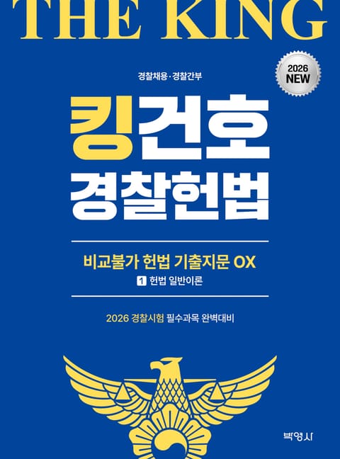 경찰 수험생 여러분이 너무나 기다리시던 『2026 킹건호 경찰헌법 비교불가 헌법 기출지문 OX』가 드디어 출간되었습니다. 이 교재는 2019년 ‘헌법 핵심지문 총정리 OX’라는 이름으로 처음 출간되어 ‘객관식 헌법의 치트키’라는 별칭이 붙을 만큼 수많은 단기합격생을 배출한 교재입니다.
