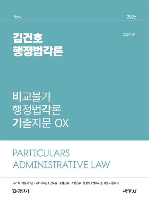 많은 수험생분들이 기다려 주신 「2026 김건호 비교불가 행정법각론 기출지문 OX (비각기)」가 새롭게 출간됩니다.