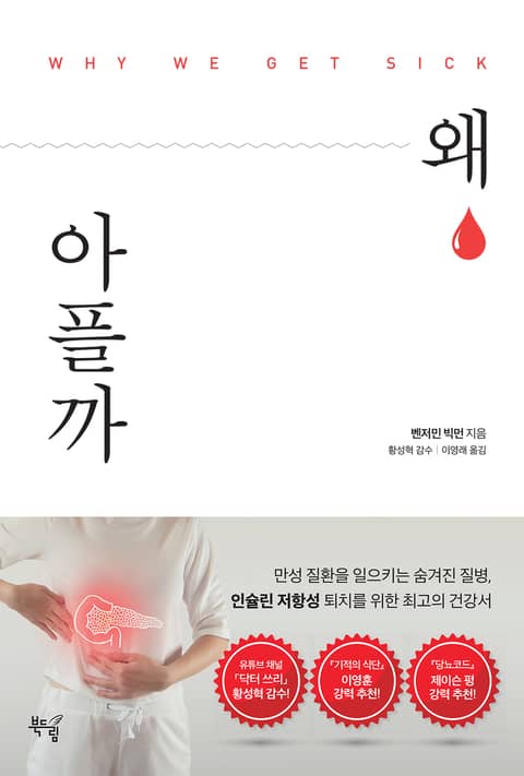 벤저민 빅먼 박사는 『왜 아플까』에서 인슐린을 만성 질환의 주범으로 지목하고 믿기 힘들 정도로 많은 연구 자료를 수집해서 인슐린이 우리가 건강할 때와 그렇지 못할 때 몸 전체에 미치는 영향을 명확하게 그려낸다. 널리 퍼져 있지만 잘 알려지지 않은 인슐린 저항성에 대해 경종을 울리는 데 그치지 않고 실질적인 해결책까지 제시한다. - 제이슨 펑