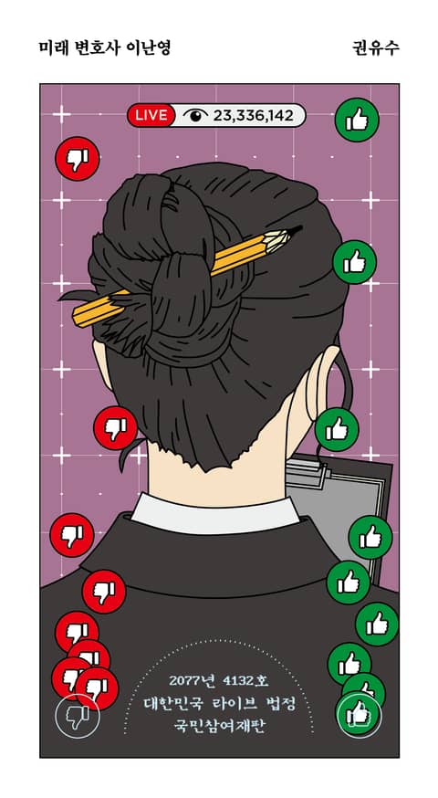 《미래 변호사 이난영》은 안드로이드가 인간 대신 전문직 역할을 수행하고, 사람들이 인간 전문직에 대한 믿음을 잃어버린 시대에 ‘인간 변호사’로 활동하는 이난영의 이야기를 그린 작품이다. 유명한 테크노포비아이며, 사투리를 쓰고, 촌스럽다는 평가를 받는 난영은 변호사로서, 엄마로서, 그리고 한 명의 인간으로서 안드로이드는 가지지 못한 인간성을 증명하기 위해 최선을 다해 재판에 임한다.