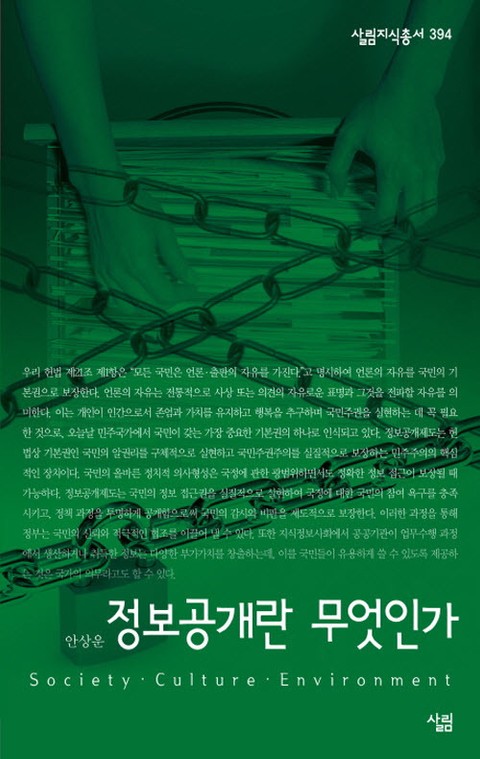 국민의 알권리를 실질적으로 보장하는 정보공개의 모든 것을 담았다. 정보공개는 왜 필요한지, 어떤 과정을 거쳐 정보공개 여부가 결정되는지, 연간 40만여 건의 정보공개가 청구되는 우리나라의 정보공개 현황은 어떤지 등을 친절하게 설명한다. 또한 정보공개 청구방법, 정보비공개 결정 시 대처법 등을 담아 실제로 정보공개를 청구할 때 도움이 될 수 있도록 했다. 독자들은 이 책을 통해 정보공개가 국민의 기본권을 보장하여 정부의 정책을 제대로 판단할 수 있게 하는 민주주의의 핵심적인 장치라는 사실을 알 수 있을 것이다.