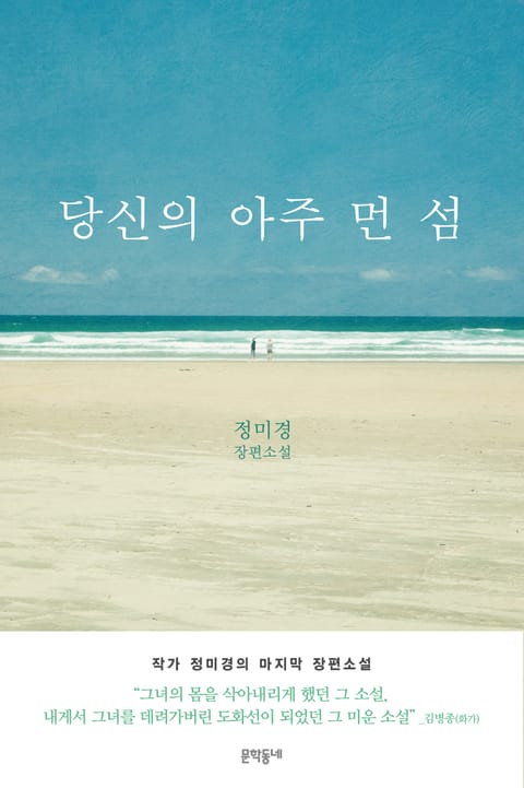 지난해 1월 18일, 소설가 정미경이 세상을 떠났다. 암을 발견한 지 한 달 만이었다. 너무도 갑작스런 일이라 남은 사람들의 비통함이 컸다. 그를 아끼고 그의 소설을 좋아하던 독자들도 마찬가지였다. 정미경은 1987년 중앙일보 신춘문예에 희곡이 당선되고, 2001년 『세계의문학』에 단편소설을 발표하면서 작품활동을 시작했다. 이후 세 권의 장편소설과 네 권의 소설집을 출간하며 한국소설사에 독자적인 자리를 만들어왔으며, 이상문학상과 오늘의작가상 등을 수상했다. 정미경은 늘 새로운 이야기를 갈구했고 인간의 심리를 집요하게 파고들었다. 무엇보다 한 편의 소설도 허투루 써내지 않았다. 그가 떠난 지 1년, 화가이자 그의 남편인 김병종이 그의 집필실에서 찾아낸 한 편의 소설이 세상에 선보인다. 어디에도 발표된 적 없는 그의 마지막 장편소설 『당신의 아주 먼 섬』이다.