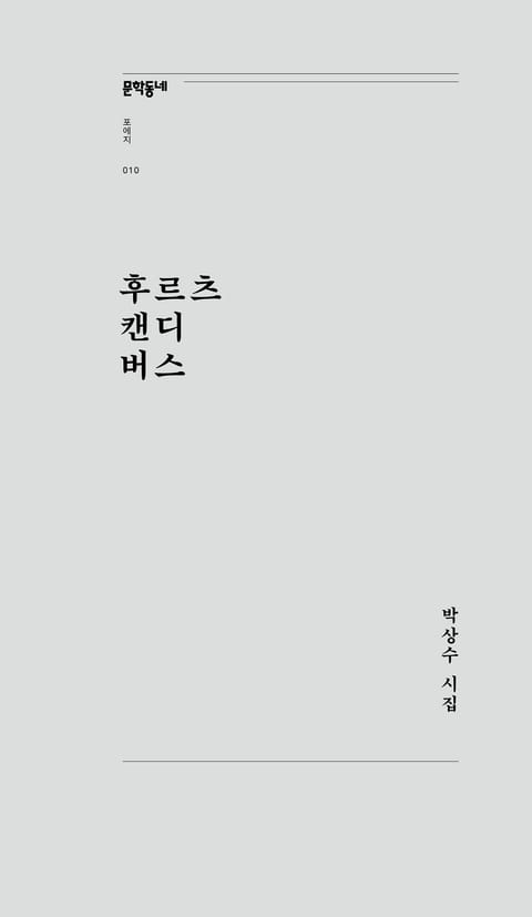 이 첫 시집의 발간에 부쳐, 김혜순 시인은 박상수를 두고 “새 얼굴, 새 목소리” “우리 시단에 또 하나의 새로운 밑그림”이리라 예견했다. 시인이자 평론가 권혁웅은 “박상수의 시는 다정하면서도 황홀하고 박상수의 비평은 섬세하면서도 엄정하다” 평했으니, 시인은 ‘우리 세대의 시’를 읽어내는 예리한 비평가이기도 하다. 언제나 제 역할 제자리에서, 새 얼굴 새 목소리 입는 일에 이토록 능수능란한 시인. 집요하고 치밀한 시선, 동시에 능숙하고 태연한 몸짓의 ‘되어-보기’. 그 색색깔의 알맹이들을 다시 한번 『후르츠 캔디 버스』에 싣는다.