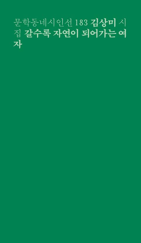 문학동네시인선 183번으로 김상미 시인의 다섯번째 시집을 펴낸다. 1990년 『작가세계』를 통해 등단한 이래 박인환문학상, 지리산문학상, 전봉건문학상 등을 수상하며 “자신의 개인적 체험을 공적인 차원으로 전환하여 생의 진실과 비밀에 마주치게 하는 능력을 갖고 있다. 자유로우면서도 절제된 시인의 화법, 유사한 시어의 반복을 통해 리듬과 변화를 창조하는 그의 매혹적인 표현법은 이제 어떤 경지에 이른 듯하다”(전봉건문학상 심사평에서)는 평을 받은 시인은 삼십여 년의 시력 동안 한시도 시의 곁을 떠나지 않고 자신의 시세계를 공고히해왔다. 그런 시인이 이번 시집 『갈수록 자연이 되어가는 여자』에 이르러 “설사 시가 아니라 해도/ 삐뚤삐뚤, 비틀비틀, 넘어지고, 엎어지면서도/ 나는 계속 시를 써왔다”(‘시인의 말’에서)는 말을 증명하듯, 메마른 어제의 생에서 기어코 건져올린 시어들로 어느 때보다 절실하고 순정하게 시쓰기와 ‘시인 됨’에 대해 이야기하고자 한다.