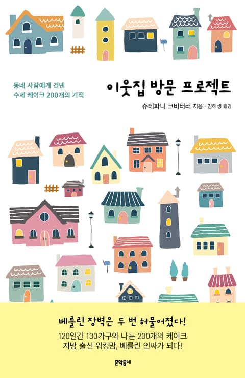 『이웃집 방문 프로젝트』는 수많은 낯선 사람으로 둘러싸인 대도시에서 이웃에 관심과 친절을 베푼 한 여성의 유쾌하고 진솔한 통찰이 담긴 에세이다. 출산 직전 남편을 따라 베를린으로 온 슈테파니 크비터러는 외로운 생활을 이어가다가 육아휴직 기간 동안 직장이 아닌, 거리로 나선다. 200일 동안 케이크 200개를 구워 들고 200가정을 방문하는 것을 목표로 집집마다 초인종을 누른다. 닫힌 문이 열리고 마음의 문도 서서히 열리면서 저자는 이웃들과 함께 티타임을 가지는 동안 그들의 진면모를 발견한다. 베를린 장벽이 무너지고 인구 변화를 겪은 도시에서 낯선 이웃을 향한 편견의 장벽까지 허무는 저자의 이야기는 공동체에서의 환대와 연대, 소속감의 힘을 전한다.