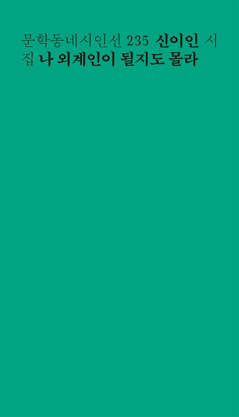 2021년 한국일보 신춘문예를 통해 작품활동을 시작한 신이인 시인의 두번째 시집 『나 외계인이 될지도 몰라』를 문학동네시인선 235번으로 펴낸다. “어디에도 속하지 못한 것들을 껴안으며 써나가주실 것이라 믿는다”는 단단한 지지 속에 문단에 나온 젊은 시인은 이듬해 “차분하고 담백한 난동”(조대한 평론가)이라는 평을 받으며 자음과모음 ‘2022 여름의 시’에 작품을 올리고, “아름답고 불온하고 이상한 ‘성장-시’”(김행숙 시인), “솔직하고 발칙하게 세상을 날것 그대로 노래하는 시선”(강동호 평론가)이라는 명명과 함께 2022·2024 문지문학상 후보에 연이어 이름을 올리며 고유하고도 믿음직한 세계를 구축해가고 있음을 증명해냈다. 첫 시집 『검은 머리 짐승 사전』에서 “인간과 비인간의 다중 우주를 천연덕스럽게 깡총거리며 넘나”(문학평론가 전승민, 해설)들었던 그는 2년 만에 새로 펴내는 이번 시집을 무대로 개개의 인간 종(種)이 속해 있는 독립된 우주를 펼쳐 보인다.