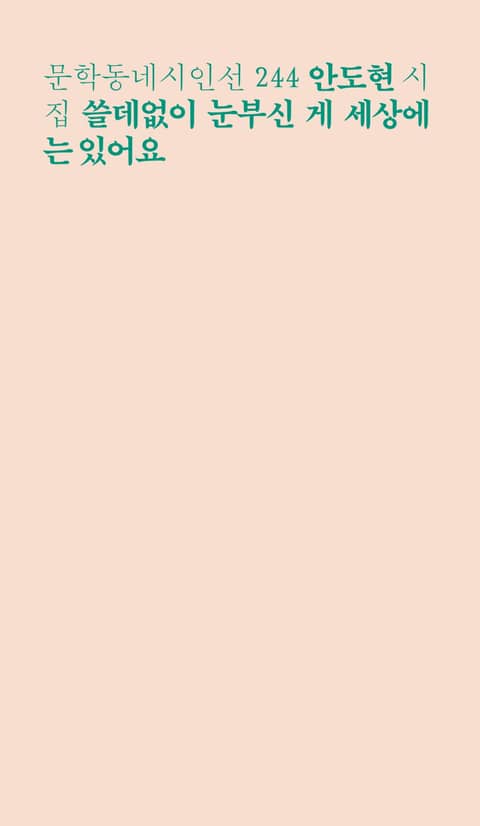 문학동네시인선의 244번째 시집으로 안도현 시인의 『쓸데없이 눈부신 게 세상에는 있어요』를 펴낸다. 1981년에 등단, 올해로 시력 45년에 육박하는 그의 12번째 시집이다. 시는 물론 동시, 동화, 산문, 평전에 이르는 전방위적 집필을 통해 한국 시단을 넘어, 한국문학장을 대표하는 불세출한 작가로 자리매김한 안도현. 그의 바탕이자 근간인 ‘시’를 5년 만에 한데 모은 『쓸데없이 눈부신 게 세상에는 있어요』는 긴 기다림에 보답할 만큼의 넉넉한 시편이 담겨 있어 더욱 반갑다. 오랜 타향살이를 끝낸 뒤 쓰이기 시작한 이번 신작 속엔 비로소 고향땅에서 마주한 쓸데없어 눈부신 우리 삶의 지문이, 불현듯 발견되는 생의 요체가, 무연하고도 무심하게 피어 있는 들꽃처럼 시의 길목마다 자리해 있다.