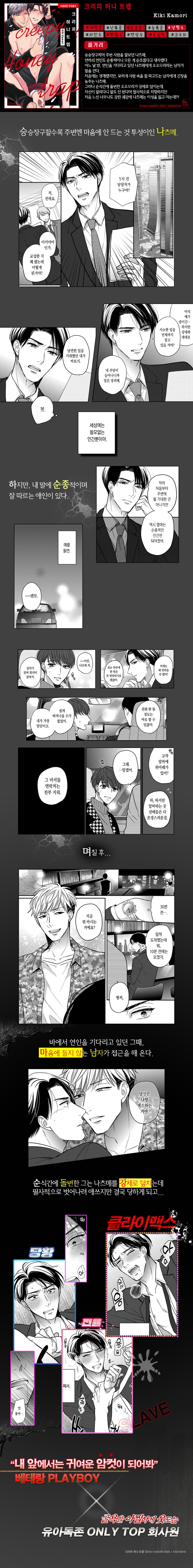 거만한 사디스트 (미남)공이 계략에 걸려서 천상수로 개조당하고 겸사겸사 사랑에 빠진다는 스토리인데... 수 얼굴이 매우 맛집입니다. 수 얼굴보는 맛에 술술 읽었네요. 스토리 자체는 뻔한데 수 얼굴 덕분에 별 다섯개 드립니다